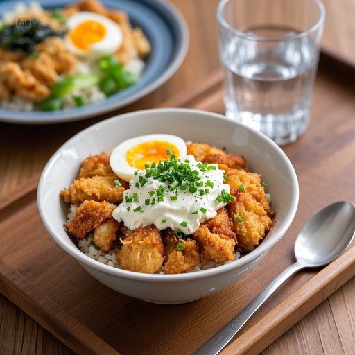 밥 위에 바삭한 닭고기를 얹고